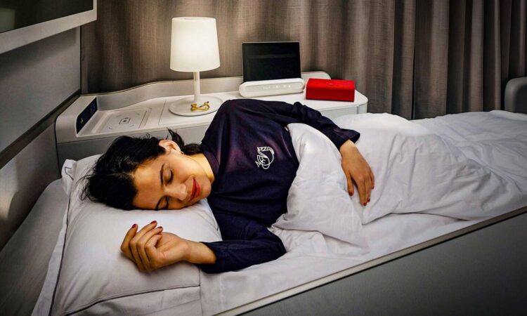 Qsuite is the first-ever Business Class compartment with doors, so you can relax in your own private space. Including single, twin, double and quad suites, you can choose your cabin according to your preferences. It offers ambient lighting, fully lie-flat beds and generous storage space. Their seats have been thoughtfully dressed in the latest and finest fabrics to optimize your comfort. You’ll get a set of comfortable pillows and soft blankets with a pair of their elegantly designed sleepwear and slippers. Additionally, you’ll receive an amenity kit filled with lip balm, lotion and a face cream.